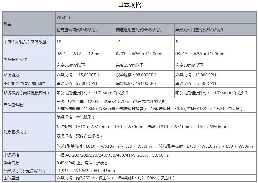 YRM20高效模塊貼片機 極 限改進“單一貼裝頭解決方案”,具有卓絕生產(chǎn)率和通用性的萬 能型貼片機1.融合Σ系列產(chǎn)品的技術(shù),實現(xiàn)卓絕的生產(chǎn)率.2.采用“單一貼裝頭解決方案”,廣泛對應各種生產(chǎn).3.標準配備可維持高品質(zhì)貼裝的各項功能.4.通過運用豐富的功能群,實現(xiàn)高效生產(chǎn).